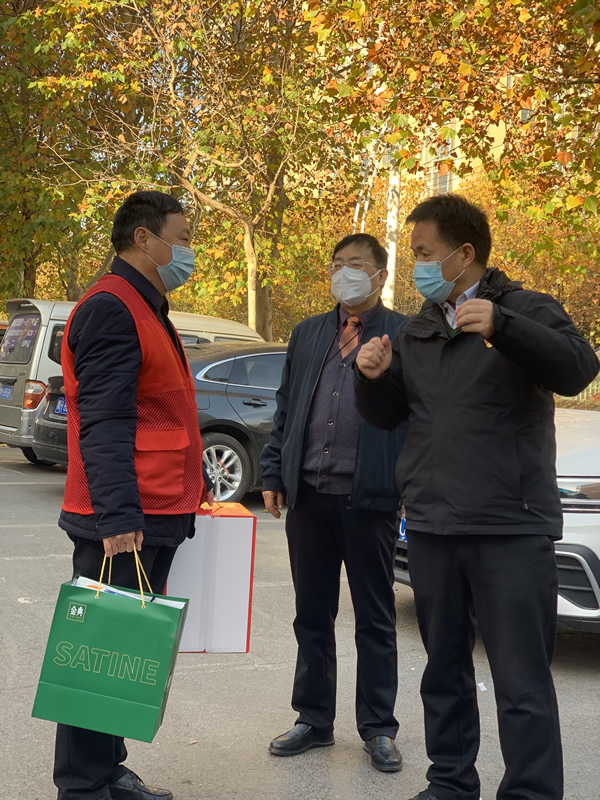 “守護家園,你們是最美的人!在守護小區居民安全的同時也要注意保重身體,作好個人防護。”12月1日上午,焦作日報社黨委書記、社長王愛軍帶隊,先后來到市玉河花園、逸景雅居等小區疫情防控卡點,走訪慰問奮戰在疫情防控一線的焦作日報社黨員干部,并送上“暖心大禮包”。焦作日報社黨委委員、工會主席趙金瑜參加慰問活動。