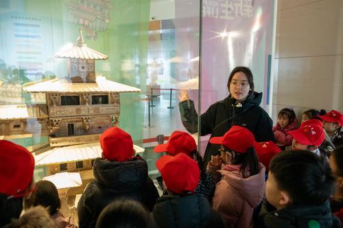 講解員給小記者講文物故事。