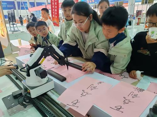 書法機器人揮毫潑墨,讓學生領略到傳統文化與現代科技融合的獨特魅力。
