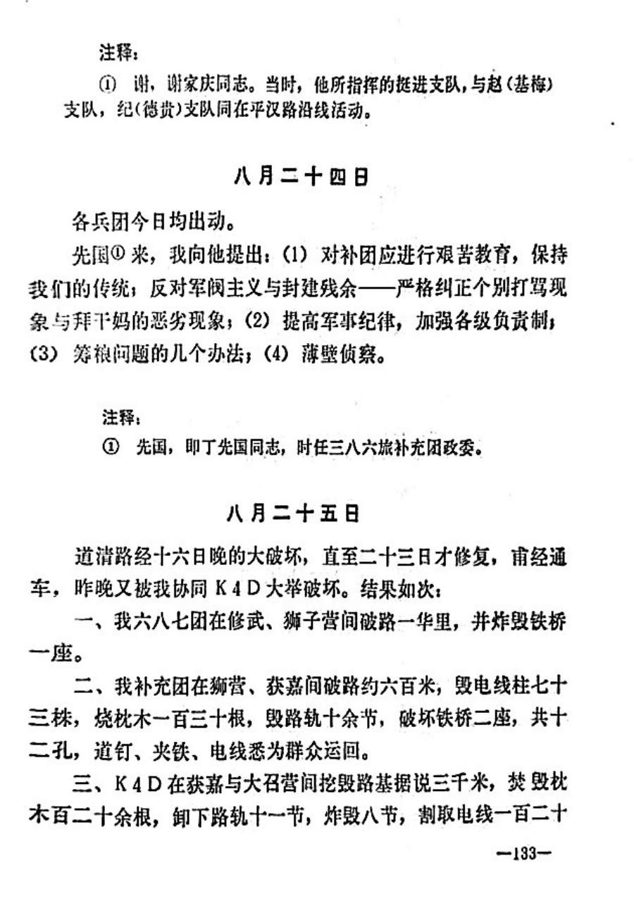 8月23日,陳賡又接師部電令,對平漢、津浦、道清等鐵路進行總破擊。陳賡根據道清鐵路剛剛恢復的情況,決定提前于24日對道清鐵路實施第二次大破擊。
