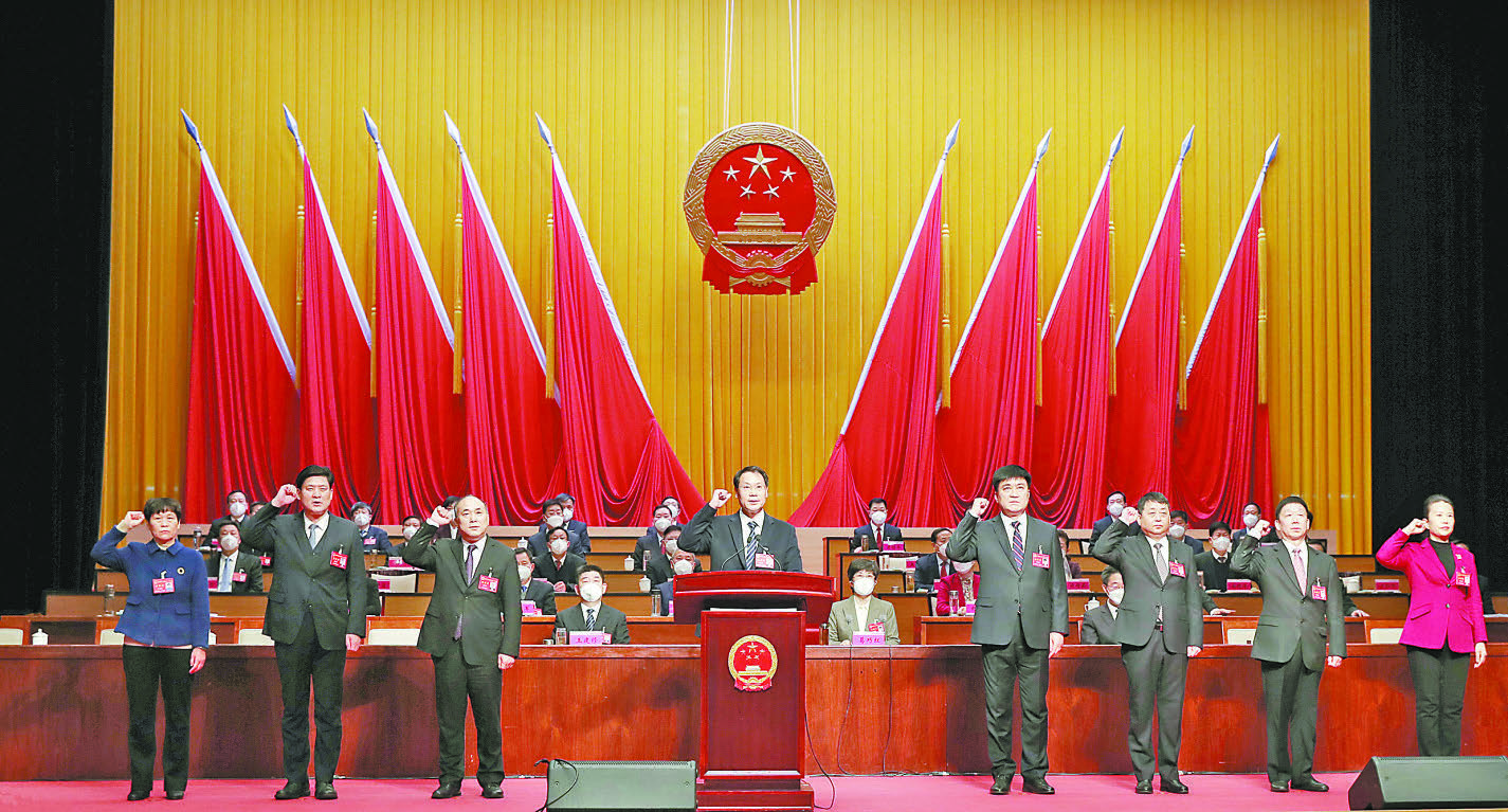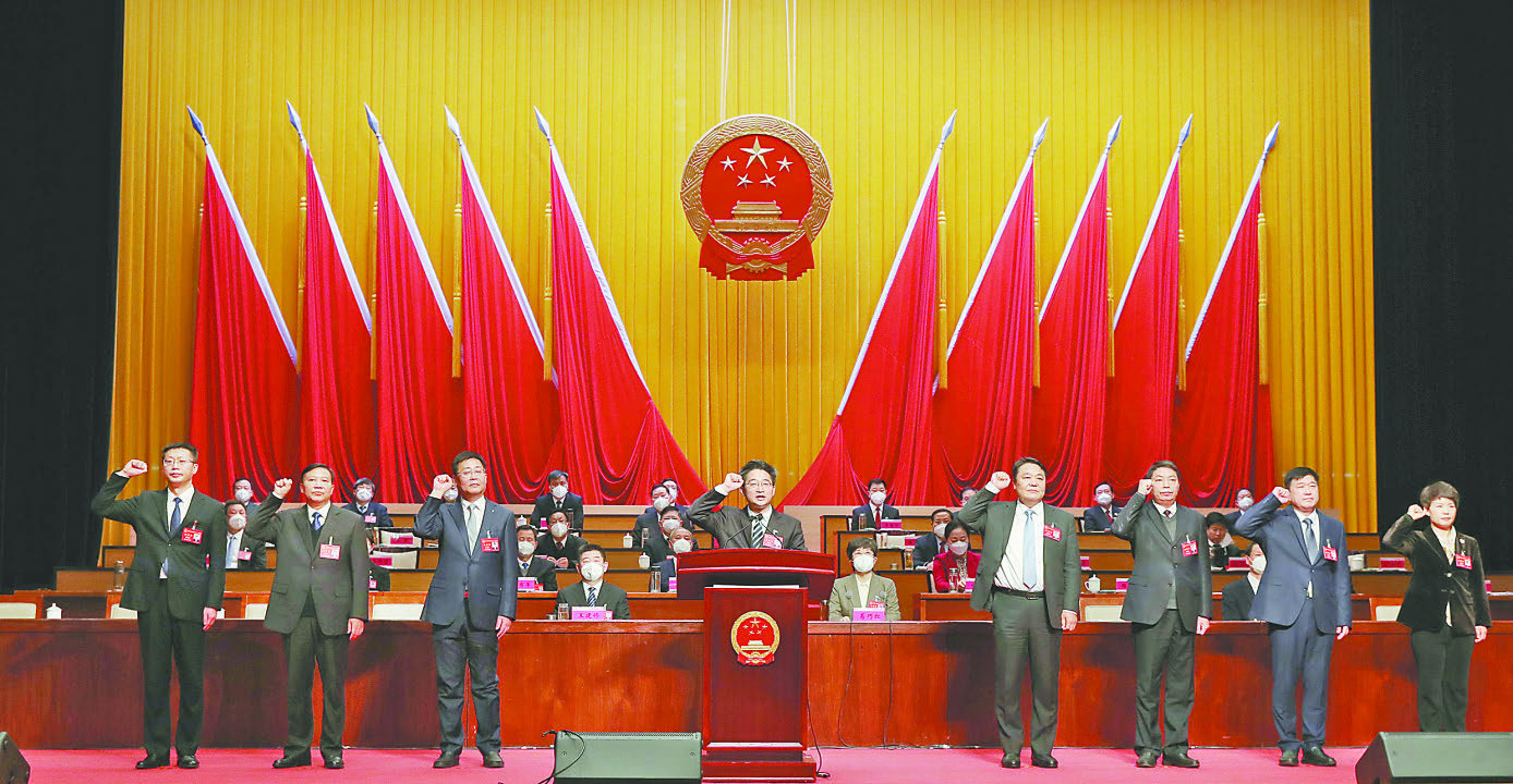 隨后,新當選的市十四屆人大常委會主任、副主任、秘書長,市人民政府市長、副市長,市監察委員會主任,市中級人民法院院長先后進行了憲法宣誓。