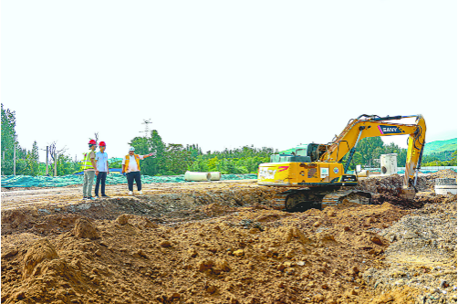 市住建局工作人員在牧野路建設工地查看施工進度。