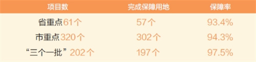 據介紹,目前全市有61個省重點、320個市重點、202個“三個一批”項目。該局科學統籌,巧妙運用“加減法”,提高工作效能和服務質量,對重點項目用地做到應保盡保,分別完成保障用地57個、302個、197個,保障率分別為93.4%、94.3%、97.5%。