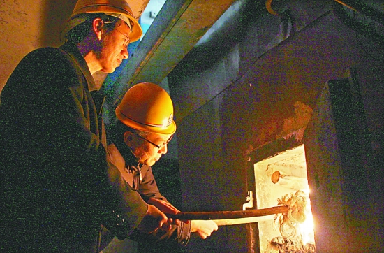 天氣驟然變冷,考慮到百姓需求,我市供熱企業于昨日上午開始點爐升溫,用戶最遲可在11月13日享受集中供暖,比預期供暖日提前了2天。圖為昨日8時30分,市綠源熱力公司開始對火爐進行點爐升溫。    本報記者 趙林峰 攝