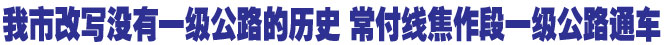 本報訊(記者孫國利、楊海利)昨日10時30分許,隨著市委書記路國賢宣布:“常付線焦作段一級公路通車。”省道常付線焦作段一級公路全線貫通通車。