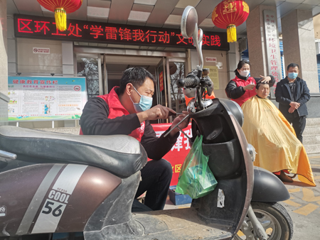 學(xué)雷鋒我行動,傳播志愿服務(wù)理念。3月5日,該處組織志愿者開展以義務(wù)理發(fā)、修車為主題的“學(xué)雷鋒我行動”文明實(shí)踐活動;顒蝇F(xiàn)場,志愿者在解放區(qū)環(huán)衛(wèi)處門前擺放了簡單的桌椅,擺上理發(fā)工具,為過往群眾、環(huán)衛(wèi)工人進(jìn)行免費(fèi)理發(fā)。另外,該處還組織有修理特長的志愿者為過往行人免費(fèi)修自行車和電動車。