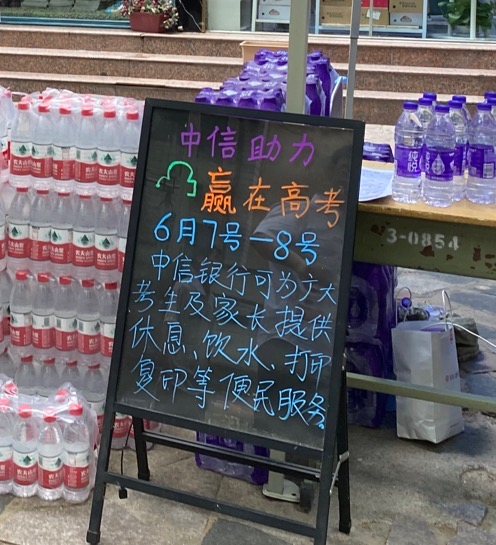 中信銀行鄭州分行為廣大考生及家長提供力所能及的便民服務。為考生提供考試用品,鼓勵考生放松心態,積極應考,并為家長、交警、特警等服務人員準備了清涼的礦泉水及休息的區域,在炎熱的夏季送去一席“涼風”。