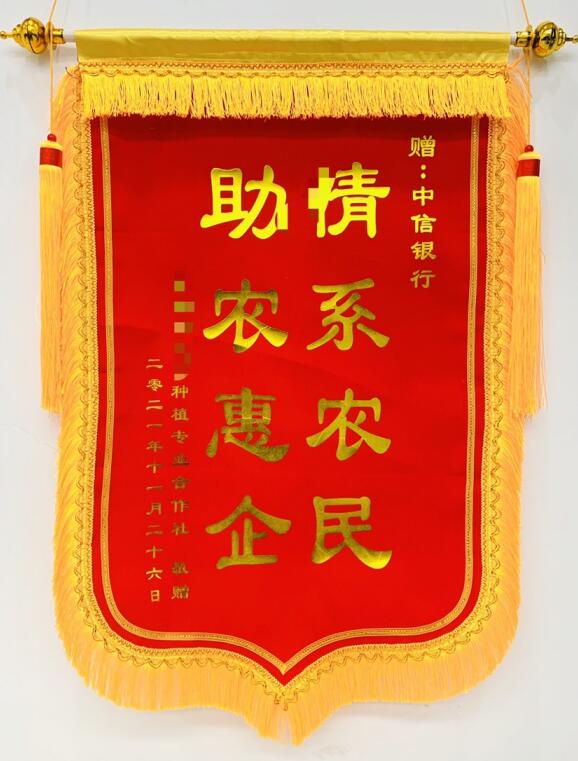 11月26日上午,某種植專業合作社陳先生親手將一面印有“情系農民 助農惠企”字樣的錦旗送到了中信銀行鄭州分行,以此表達對該行為其提供鄉村振興貸款期間優質服務的感謝和認可。
