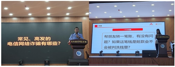 9月24日,中國人民銀行南陽市分行、中信銀行南陽分行、南陽市反虛假信息詐騙中心、南陽農業職業學院經貿學院四家單位聯合在南陽農業職業學院經貿學院舉辦“反洗錢知識普及月”進校園專題講座,進一步增強了在校學生洗錢風險防范意識和能力,為守護資金安全、維護社會金融穩定起到了良好的宣傳效果。本次講座特邀南陽市反虛假信息詐騙中心白松巖警官,國際反洗錢師、中信銀行鄭州分行反洗錢室高級業務經理王琳老師主講,兩位講師分別從常見、高發的電信網絡詐騙入手,介紹了《反電信網絡詐騙法》等法律法規,增強了學生的反詐騙反洗錢法律意識,又結合真實的典型案例,深入淺出地對電信詐騙犯罪、幫信罪、毒品犯罪、傳銷等犯罪活動進行了剖析,使在校學生了解了洗錢的危害和嚴重后果,掌握了“七不要”的防范措施。活動最后設置了反洗錢知識有獎競猜搶答環節,大家競相搶答,現場氣氛非常活躍。
