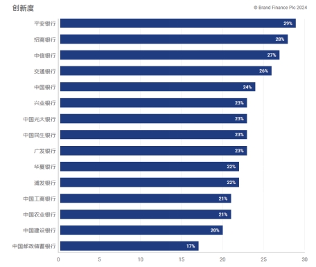 《Brand Finance 2024年中國銀行業(yè)品牌調(diào)研報(bào)告》銀行創(chuàng)新度排名
