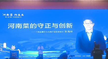 河南省餐飲與住宿行業(yè)協(xié)會(huì)會(huì)長(zhǎng)張海林在演講。