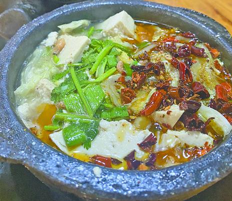 武陟砂鍋,傳承千年。制作時,先將肉類食材熱鍋清水斷生、去異味,然后放入盛有清水的砂鍋內(nèi),旺火燒開,再用小火慢慢煨煮,湯味濃厚,肉質(zhì)酥嫩香爛。最令人驚艷的是,武陟砂鍋端上餐桌后,服務員會端著一勺剛炸好的紅辣椒油倒入砂鍋,“刺啦”一聲,刺激食客們的味蕾。