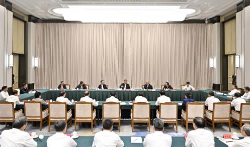 中共中央政治局常委、中央辦公廳主任蔡奇,中共中央政治局常委、國務院副總理丁薛祥出席座談會。