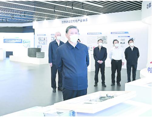 7日下午,習近平來到中環產業園考察。在園區展廳,習近平聽取當地發展新能源新材料產業、促進產業結構優化調整、推動綠色低碳發展等情況介紹。隨后,習近平來到生產車間實地察看產品生產流程,詳細了解園區企業半導體和光伏材料等產品的研發生產情況。他強調,堅持綠色發展是必由之路。推動傳統能源產業轉型升級,大力發展綠色能源,做大做強國家重要能源基地,是內蒙古發展的重中之重。在這方面內蒙古方向明確、路子對頭、前景很好,大有作為、大有前途。離開園區時,習近平親切地對前來歡送的企業員工說,你們企業和園區辦得不錯,看了感到很提氣。現在,我們要靠高水平科技自立自強、構建新發展格局來攻克科技難關。構建國內大循環是為了保證極端情況下國民經濟能夠正常運行,這同參與國際經濟循環是不矛盾的。我們堅定不移實行高水平對外開放,敞開大門搞建設,一起合作實現共贏。習近平祝愿企業和員工繼續努力,芝麻開花節節高,更上一層樓。
